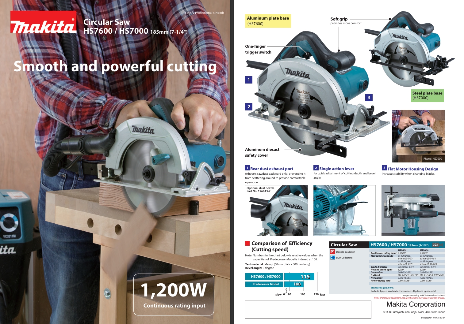 View more about MAKITA HS7600 185mm (7-1/4") Circular Saw 1200W on main site